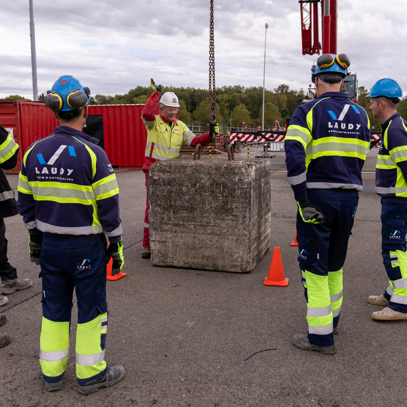 In 2023 hebben twintig medewerkers van Laudy Bouw en zusterbedrijf Willems Bouwbedrijf de tweedaagse training gevolgd, in kleine groepjes van vier. Het ging hierbij om voormannen, timmermannen en anderen die op de bouwplaats eenvoudige hijswerkzaamheden uitvoeren. Eén van hen is Roel van den Brandt. “Ik dacht er wellicht te makkelijk over, maar door de training heb ik toch nieuwe handvatten gekregen om in praktijk nog veiliger te kunnen werken. Ik leerde hoe ik verschillende bouwmaterialen op de juiste manier kan aanpikken en hoe deze aangeslagen moeten worden. En of de hijsbanden sterk genoeg zijn en welke berekeningen we moeten maken om te weten hoe je het beste kan tillen. Een complete en nuttige cursus die ik iedereen aanraad.” Het verbaast Frank niet dat de training zo positief ontvangen wordt. “De trainer van Mammoet Academy heeft veel ervaring en is zelf ook kraanmachinist. Hij weet hoe hij de aandacht van de cursisten moet vasthouden. Dat hij dat doet met een flinke dosis humor, helpt natuurlijk best. Samen met hem heb ik vooraf ook een toer langs leveranciers gemaakt, om te vragen of ze spullen over hadden voor de training. Zo hebben we nu onder meer pallets en breedplaatvloeren beschikbaar, waarmee mensen ook op de bouwplaats werken.”