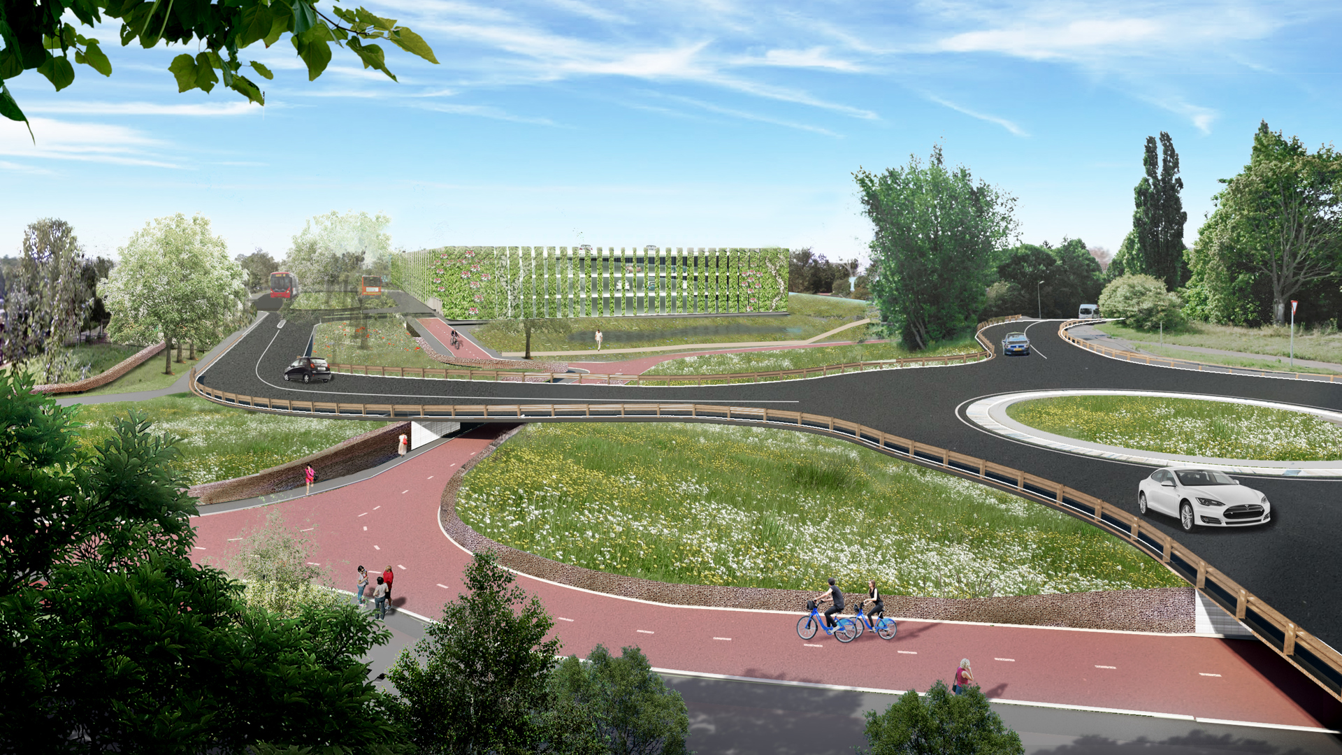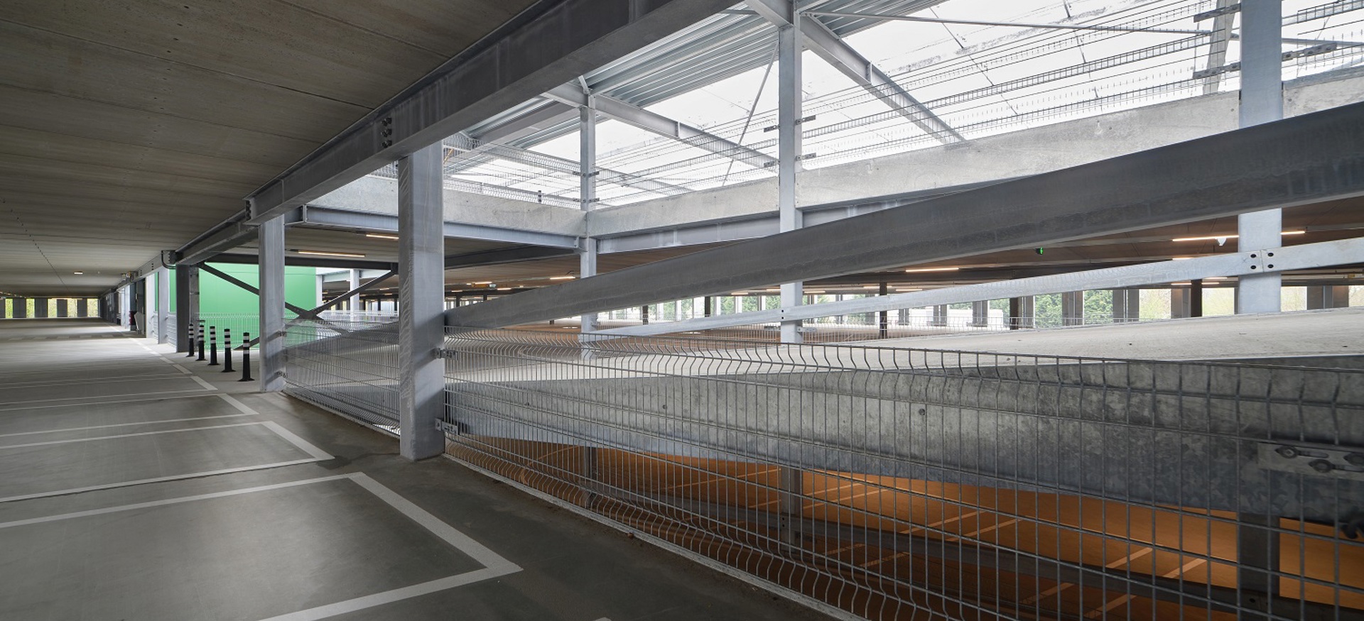 Ook in duurzaam opzicht ligt de lat hoog, wat te zien is aan de binnen- en buitenkant van de parkeergarage. Wandelaars lopen via wadi’s en een natuurbelevingspad langs de groene gevel. Deze wordt geheel begroeid met planten, zodat het gebouw opgaat in het landschap. Zonnepanelen zorgen voor een energieleverend gebouw. Samen met ecologische maatregelen, zoals aanplant van bomen, hergebruik van gekapt hout, inpassing in het ecologische landschap en een bijenhotel, verwezenlijken we zo onze duurzaamheidsambities.