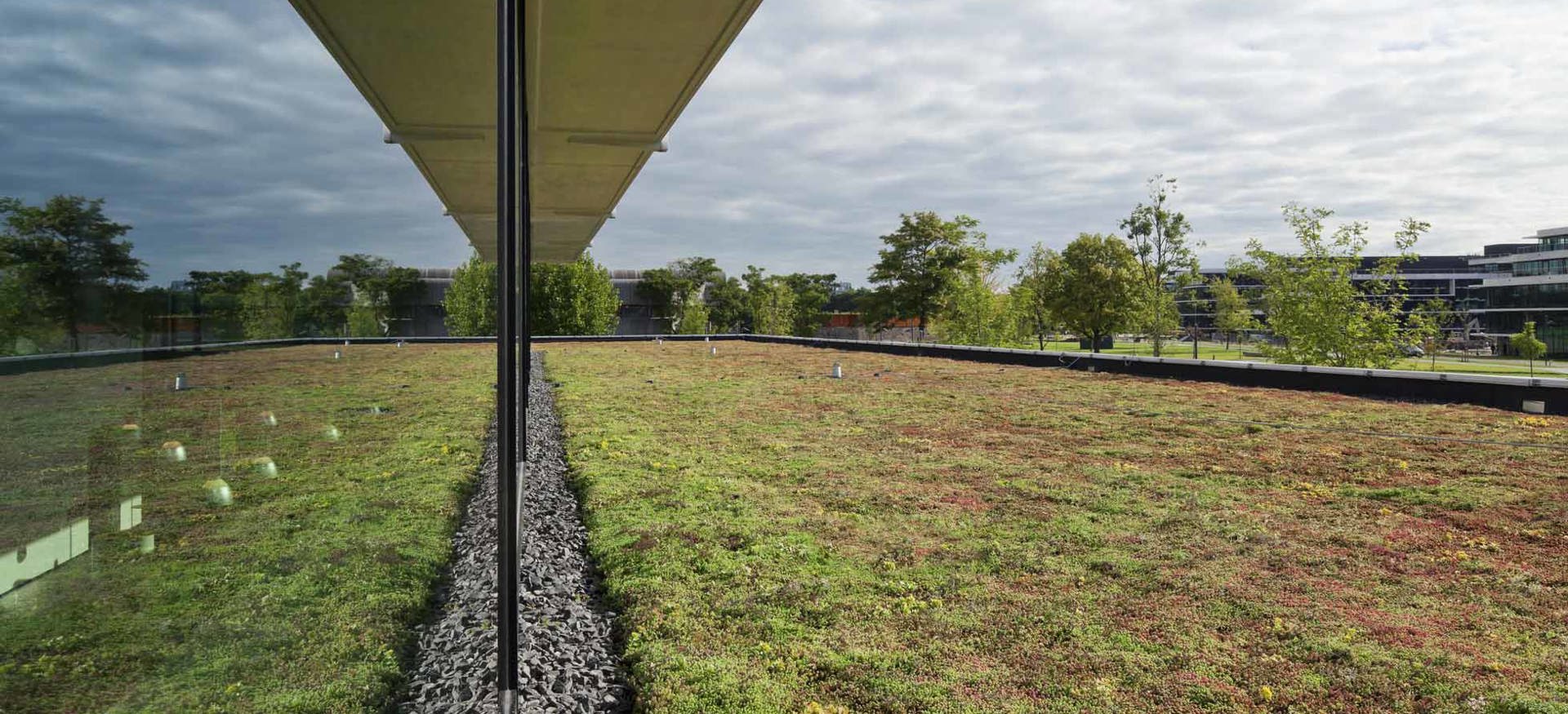 Het ontwerp past perfect in het stedelijk landschap en respecteert historische elementen en bestaande huisvesting en vegetatie. Een bijzondere innovatie is de ondergrondse opslag voor afval van het bedrijfsrestaurant. De tank is energie- en ruimtebesparend, vergt minder logistiek en geeft geen stankoverlast. Ook duurzaam: de sedum dakafwerking die zorgt voor afvoer van aanzienlijk minder regenwater en de aanwezigheidssensoren die installaties en verlichting aansturen.