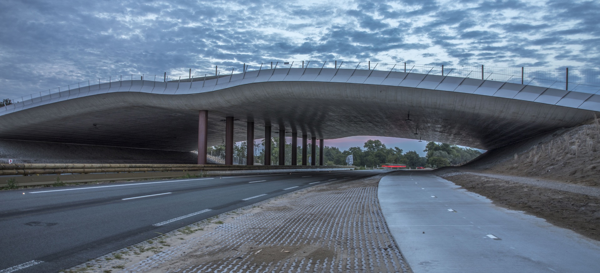 Zowel het ontwerp als de manier van bouwen kennen unieke kenmerken. Als je onder ‘de zeemeeuw’ doorrijdt, zie je bijvoorbeeld een prachtig geribbeld patroon in het beton. Dit doet denken aan ‘‘een strandvlakte waarop wind en water hebben ingewerkt”. Het is een monnikenwerk volgens de projectleider, maar met geweldig resultaat.