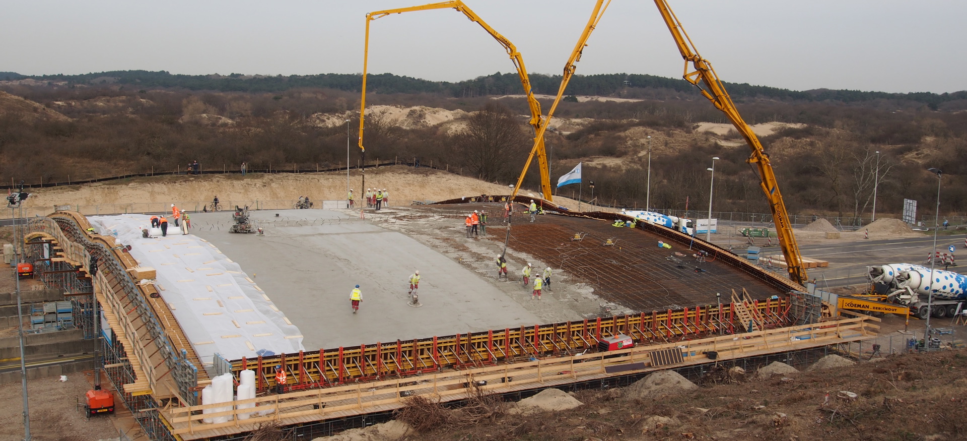 Om het verkeer zo min mogelijk te hinderen tijdens de stort van 24.000 m3 beton, is voor een ambitieuze 24-uurs aanpak gekozen. Hierdoor kon de Zeeweg ruim voor het moment dat de eerste strandgangers van het mooie weer wilden genieten, weer open.