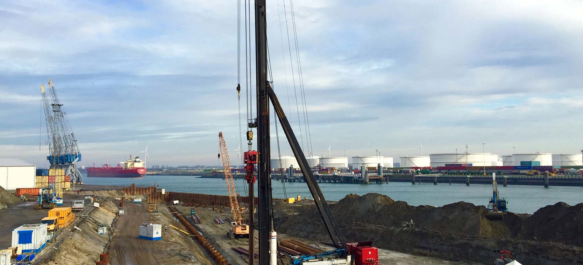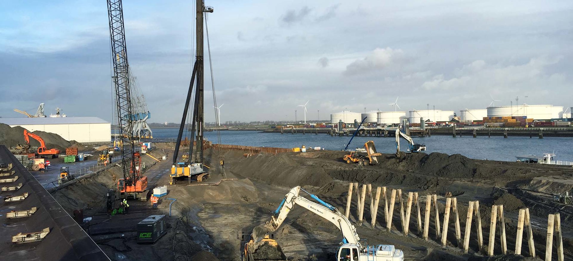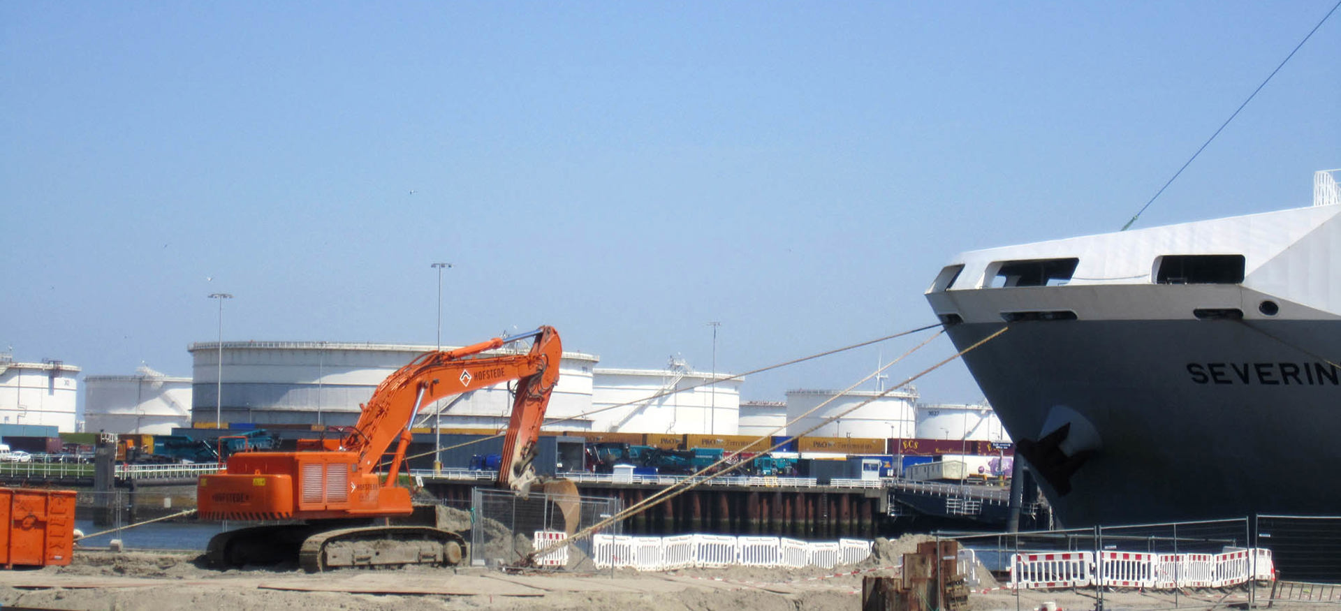 Onze werkzaamheden waren al in volle gang toen Havenbedrijf Rotterdam de opdracht uitbreidde. In goed overleg stopten we tijdelijk de werkzaamheden om zo de slimste werkwijze voor de aanvullende opdracht te bepalen. We besloten eerst de tweede RoRo-ligplaats te realiseren, die verder in de haven komt te liggen. Met die ligplaats creëeren we gelijk extra ruimte, zodat we de eerste ligplaats met minder hinder voor Stena Line kunnen aanpakken.