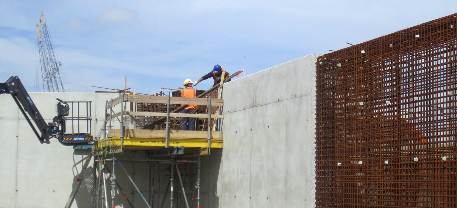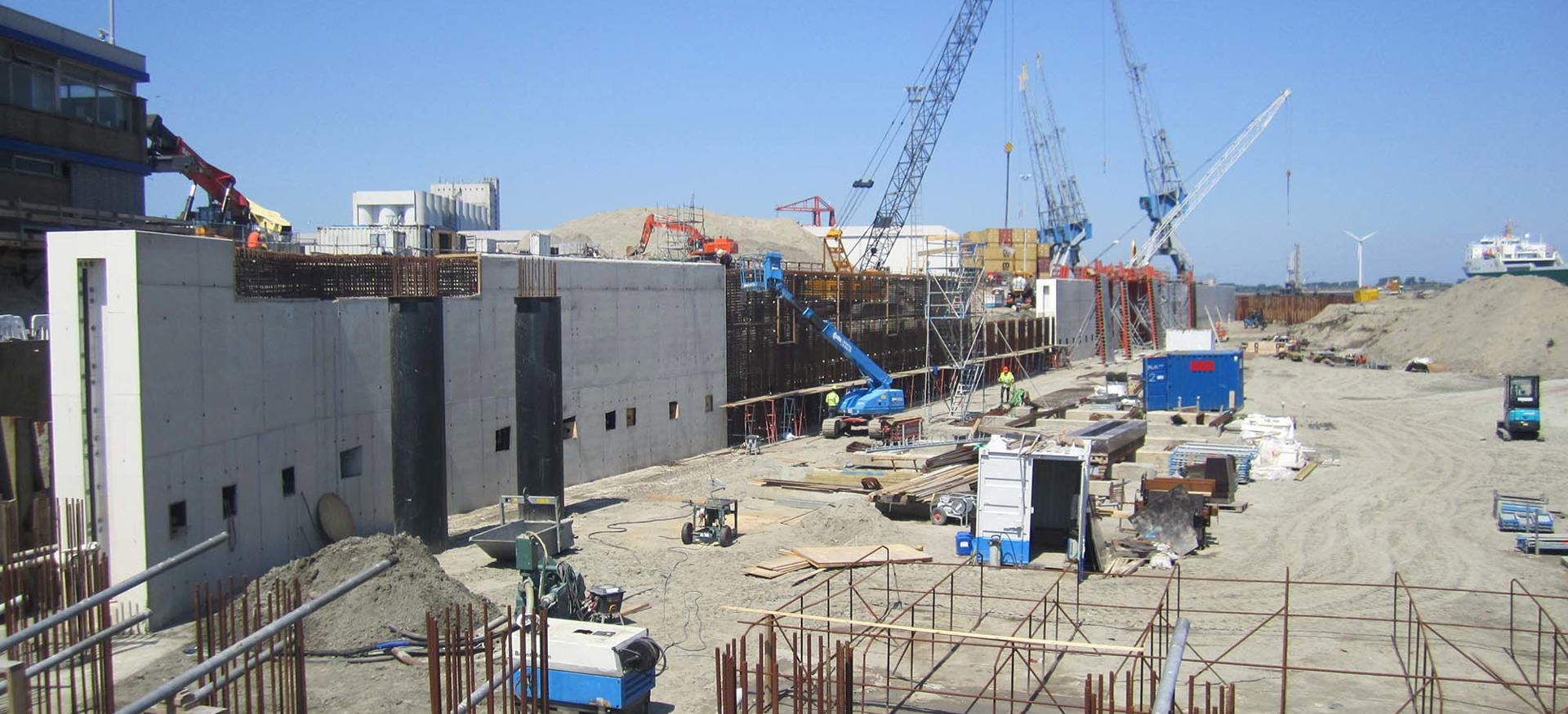 Tijdens ons werk gaan de terminaloperaties aan land- en waterzijde gewoon door. Dit leek eerst vrij ingewikkeld, maar door de extra ligplaats krijgt Stena Line meer kademuur én wordt onze werkruimte vergroot. Toch kunnen we elkaar niet helemaal ontlopen. Daarom stemmen we dagelijks goed af, mede om de veiligheid te borgen van de rederijmedewerkers die hun trossen aan bolders op ons bouwterrein moeten vastmaken.