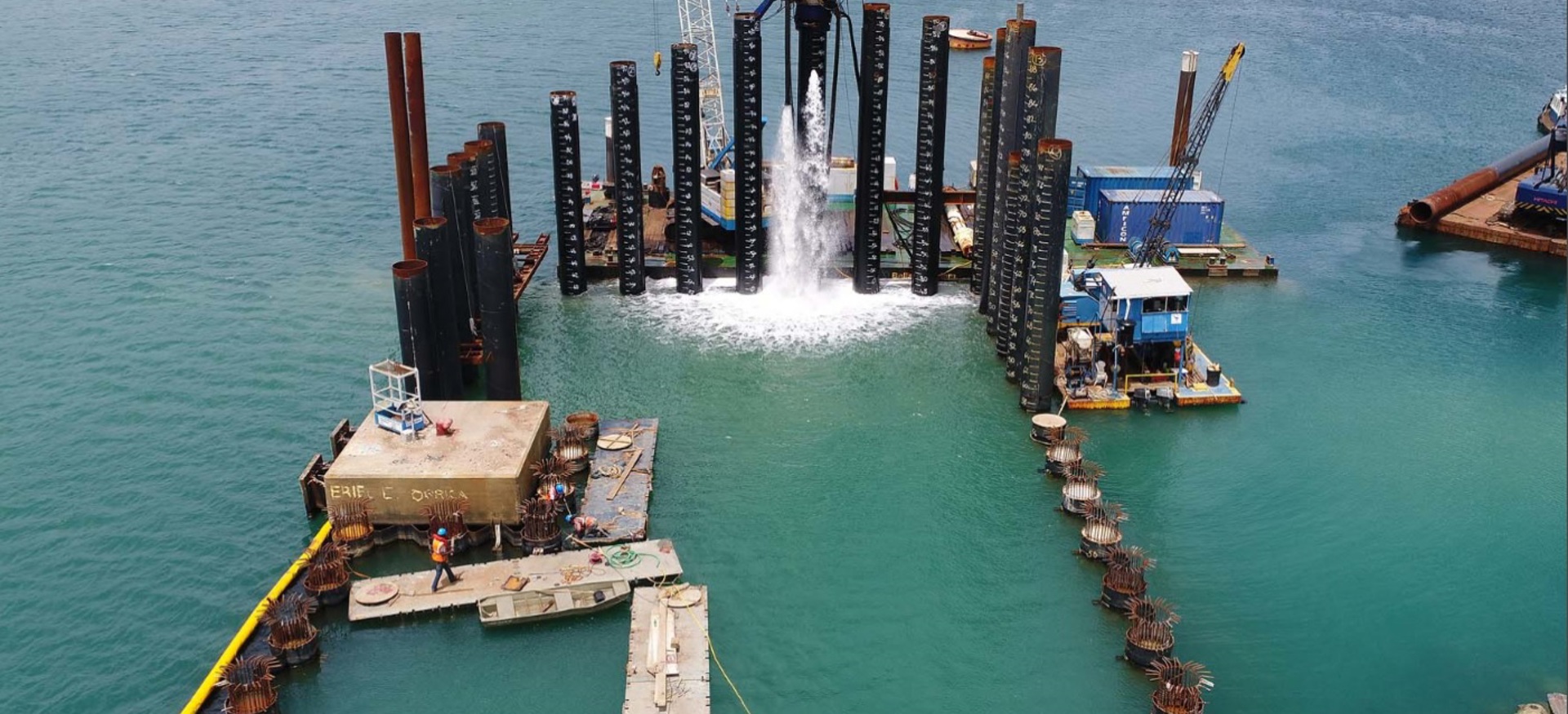 Het project raakte door een ontwerpwijziging in tijdsnood: 1 juni 2017 ging de eerste paal de grond in, terwijl toeristen al een cruise voor december 2017 kunnen boeken. Omdat wij en de autoriteiten bewust zijn van het belang van de toeristische sector, versnelden we het proces in goed overleg met de autoriteiten. Zo breidden we onze capaciteit uit en gingen we 24/7 werken. Die flexibiliteit konden we bieden dankzij een ervaren team en eigen materieel.