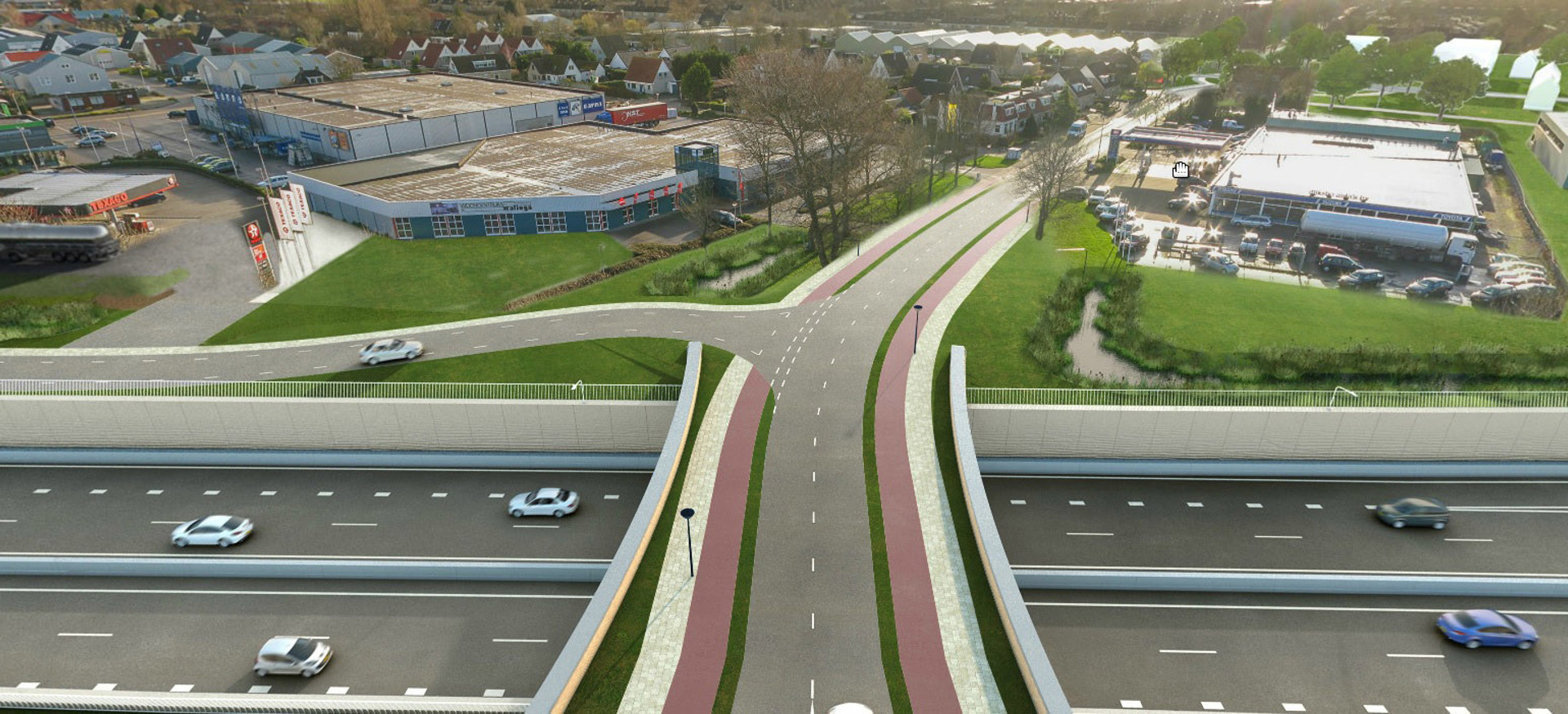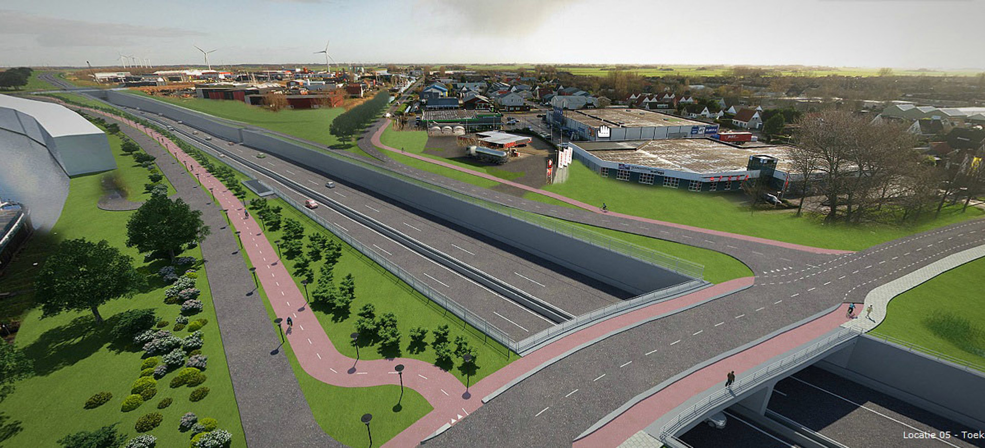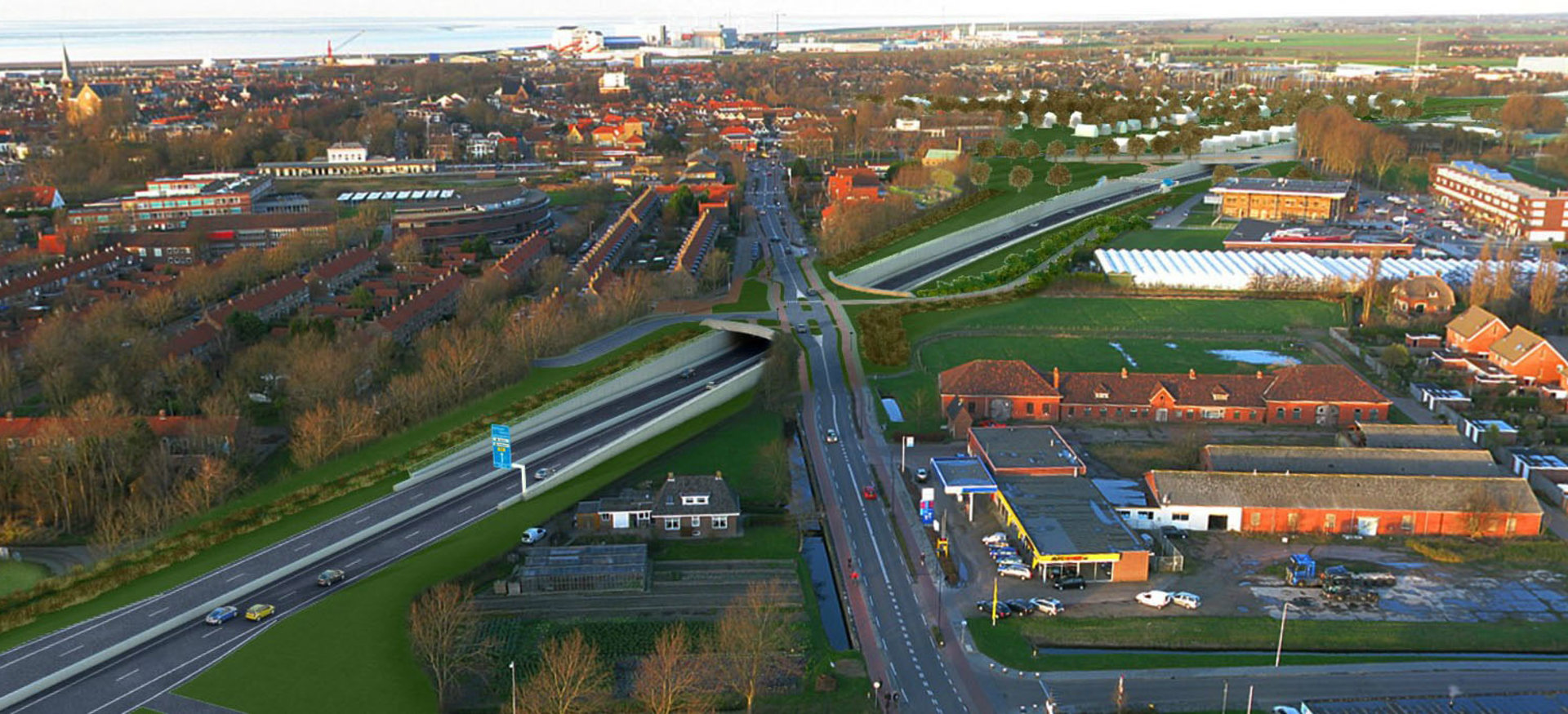 Een deel van de N31 (Amsterdam – Leeuwarden), dat door Harlingen loopt, is opnieuw aangelegd. Wij maakten het ontwerp en realiseerden de weg, inclusief de vijf viaducten en een aquaduct. De weg is verbreed tot tweebaansweg en is grotendeels – in een ‘open bak’ – vijf meter onder het maaiveld komen te liggen. Hierdoor is de weg uit het zicht en is Harlingen visueel weer één geheel geworden.