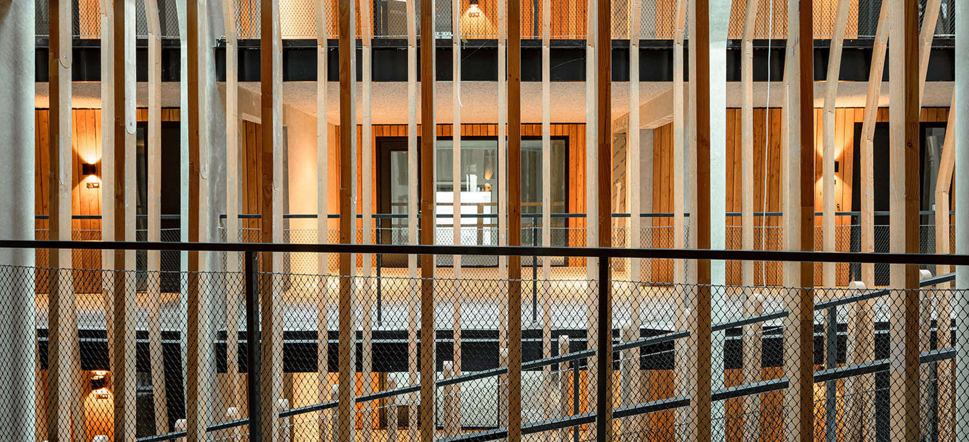 En dat is alleen nog maar de buitenkant: de echte verrassing van Jonas' zit van binnen. Het concept is geïnspireerd op de houten skeletbouw van schepen, wat een bijzonder ruimtelijk en tegelijk geborgen gevoel geeft. Echte eyecatcher is de Canyon; een bijzondere plek met verschillende atriums die diverse ruimtes met elkaar verbindt.