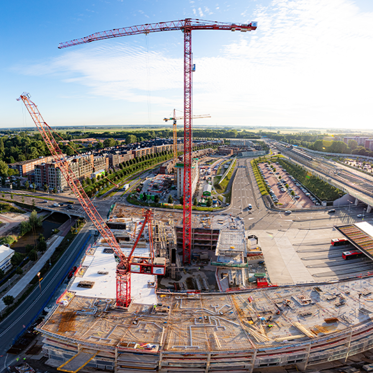 Bouwen in onze hoofdstad betekent werken op een postzegel. De bouwlocatie ligt pal naast metrostation Noord, het beginpunt van de Noord-Zuidlijn. Het is een uitdagende plek voor een project van deze grootte, op zowel bouwtechnisch als logistiek vlak. De ruimte hier is zelfs zo beperkt dat de keet aan de overkant van de weg is geplaatst op een gedempte sloot. Tegelijkertijd wordt voor de opslag van bouwmaterialen, in goed overleg met de gemeente, gebruik gemaakt van een stuk openbare ruimte. En indien nodig van een bouwhub in het havengebied. Bovendien loopt er dagelijks een logistiek medewerker rond, zodat alle bevoorrading just-in-time en just-in-place plaatsvindt en overlast voor de omgeving zoveel mogelijk wordt beperkt.