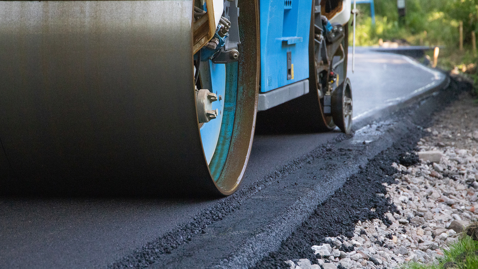 Het resultaat: een groene en veilige weg. Na de uitvoering door onze wegenbouwspecialisten is de hobbelige, verouderde weg getransformeerd tot een strakke weg die weer jaren mee kan.