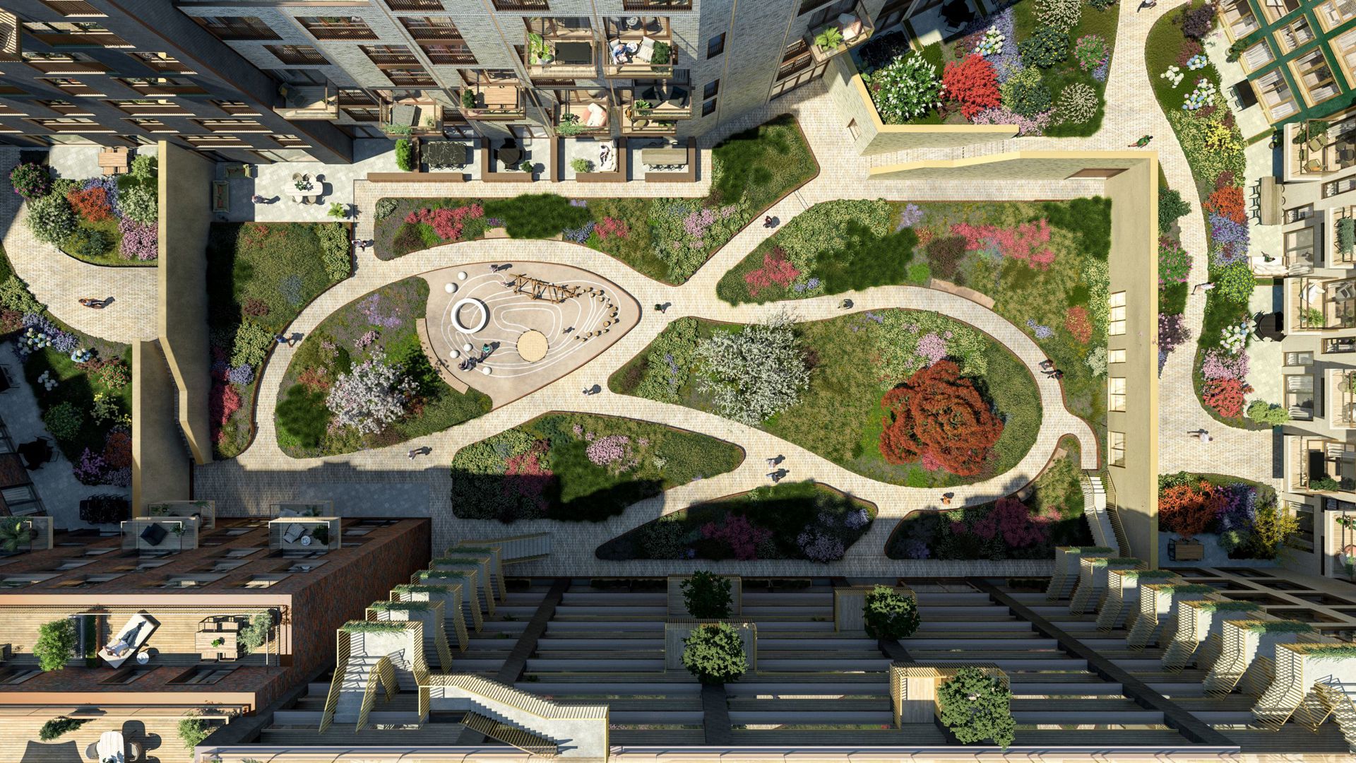 De appartementen in Knightsbridge zijn divers, kwalitatief hoogwaardig en bestaan uit studio’s, twee-, drie- en vierkamerappartementen, maisonnette appartementen en penthouses. Het blok bestaat uit zes verschillende gebouwen, ook wel ‘huizen’ genoemd, met elk een eigen soort architectuur, maar vormen samen één geheel. Huis één omvat 76 appartementen, huis twee 55 appartementen, huis drie 81 appartementen, huis vier 81 appartementen, huis vijf 77 appartementen en huis zes 36 appartementen.