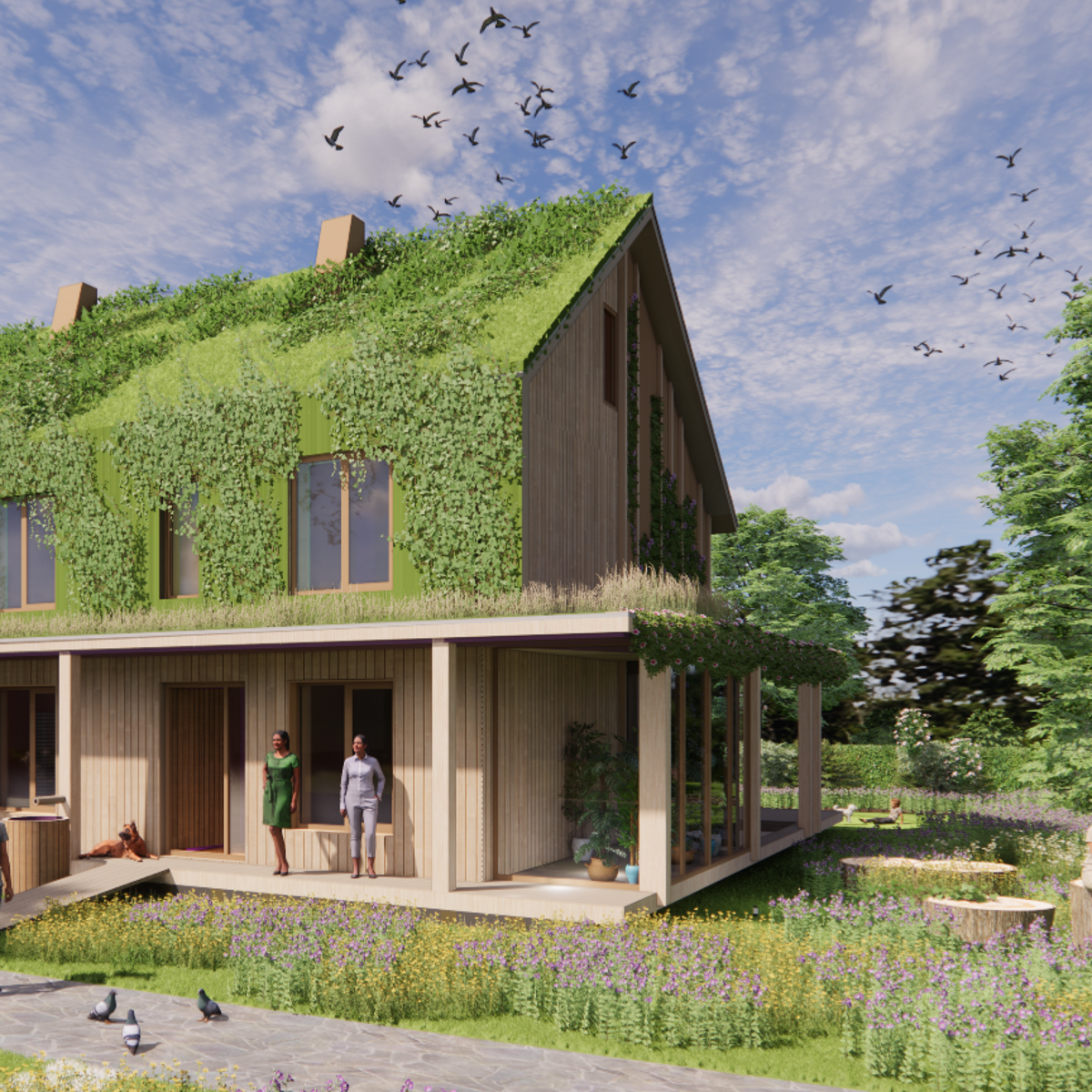 In het Brabantse Heeze worden energiepositieve rijtjeswoningen gebouwd van bio-based materialen. Deze duurzame woningen worden 'Natuurhuizen' genoemd en bestaan grotendeels uit prefab stropanelen, waardoor er snel en efficiënt gebouwd kan worden. Doordat de woningen voor meer dan 95% zijn gemaakt van natuurlijke materialen zoals stro, slaan de materialen maar liefst 90 ton CO2 op. Bovendien brengt het Natuurhuis maar liefst 10% extra energie op. De gevel en het dak zijn grotendeels bedekt met groen. Dit groen en de natuurlijke bouwmaterialen werken als buffer voor de waterhuishouding en gaan hittestress tegen.